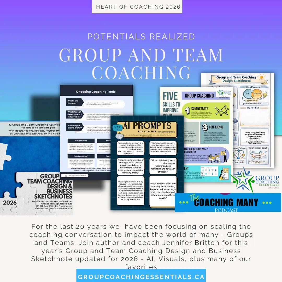 The 2026 Group & Team Coaching Design and Business Sketchbook is a practical, reflection-driven resource for coaches working with groups and teams who want tools they can use now — in conversations, programs, and business design.